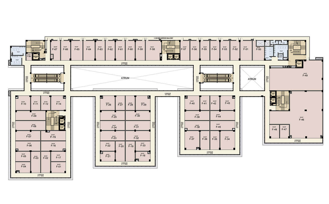 Retail shops: First&second floor-32,000/sq.ft.