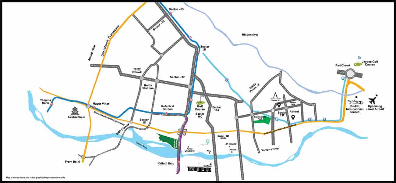 Bhutani Technopark is well situated in the heart of Noida’s business sector, with easy access to the city’s commercial districts, major transportation hubs, and residential neighborhoods. With its prime location near Delhi, Greater Noida, and other major NCR cities, the development provides unrivalled access to a large talent pool, clientele, and market prospects. Due to its advantageous location, it is a top choice for companies wishing to expand into one of India’s fastest-growing economic corridors.