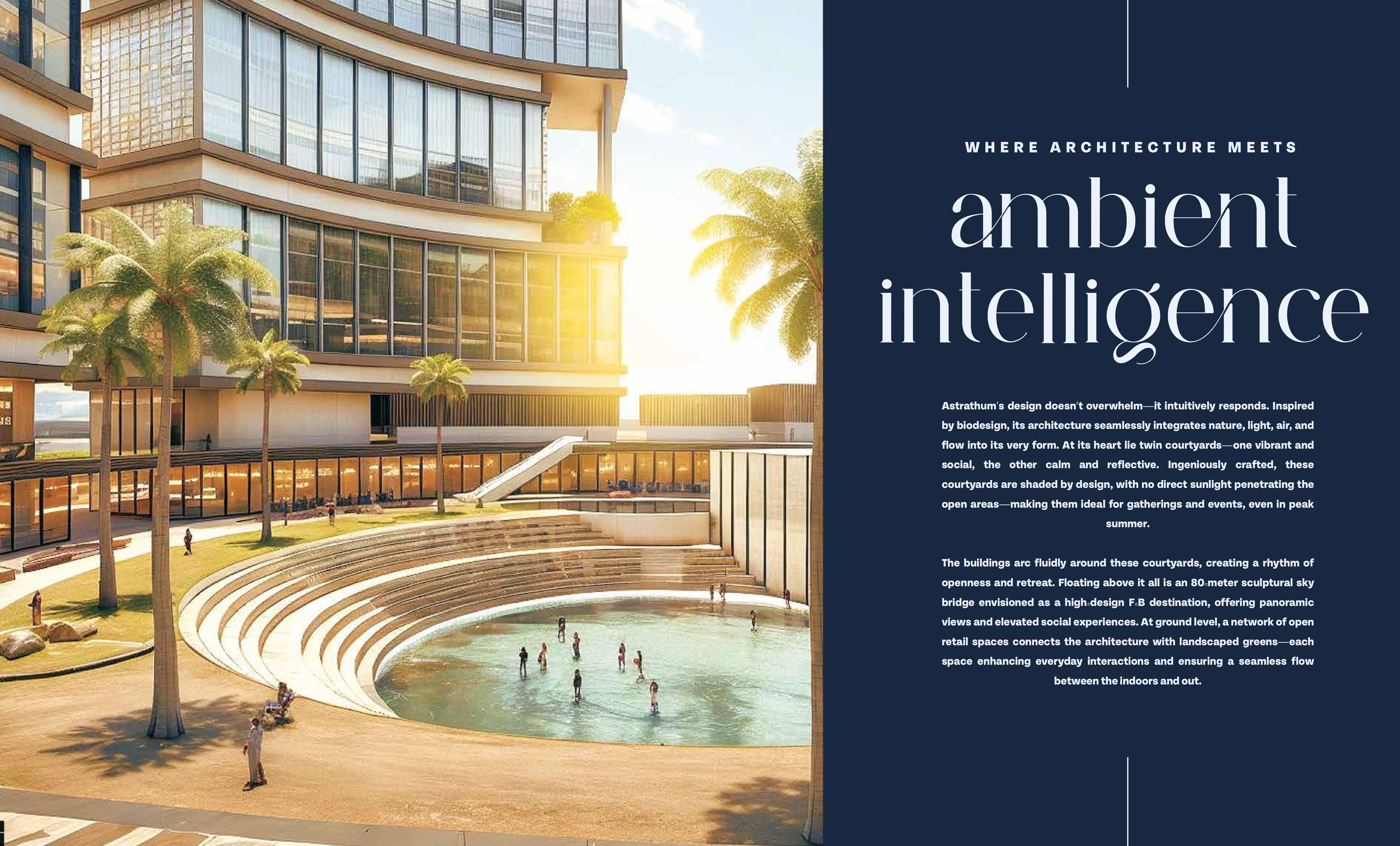 The central podium will serve as a vibrant social hub of interaction, exhibitions, and recreation, infusing life and community in the complex. Sustainability & Smart Infrastructure