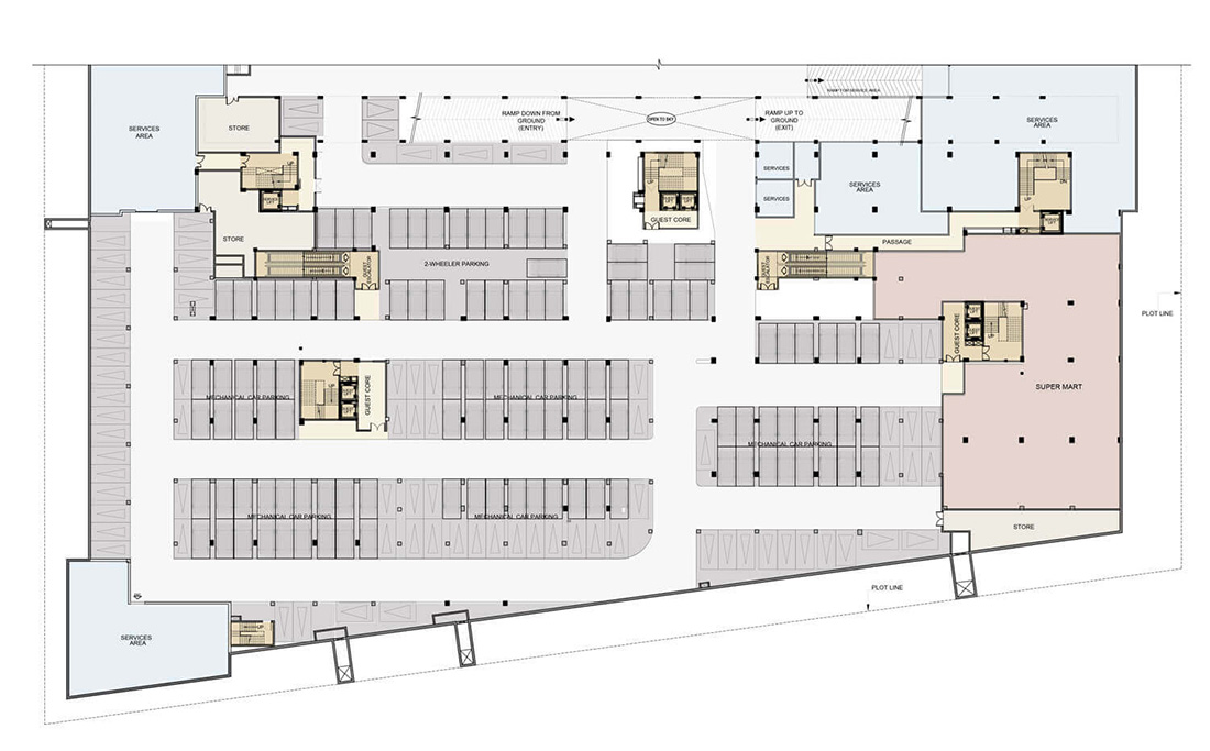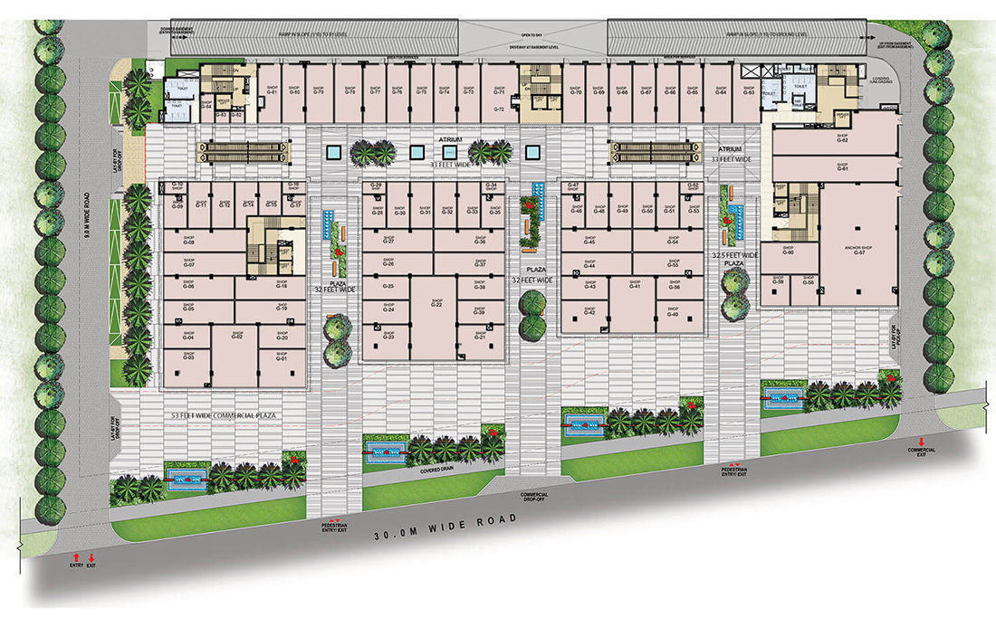 Crafted as a low-rise structure, Bhutani City Center beckons visitors with its enticing promise of al fresco shopping and dining. Its architectural prowess is evident in the thoughtful arrangement of open blocks and all-side open facades, fostering an immersive and dynamic ambiance throughout.